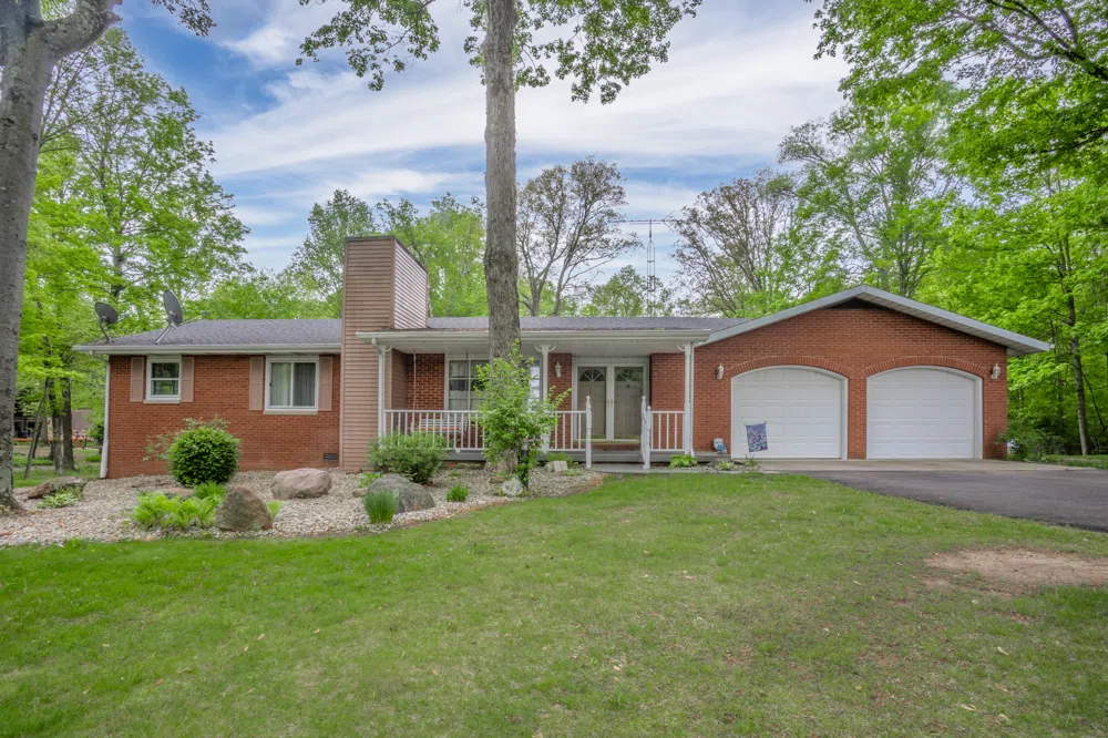 This lovely ranch home sits on a one acre, partially wooded lot in the Westwood area. You'll love the curb appeal, beautiful landscaping, and front porch as you enter the property. Walk-in the front door into the living room with bay window and double sided gas fireplace that connects to the den/family room. The bright, updated kitchen features an island and dining area. There are three bedrooms one and a half baths. The backyard features a beautiful view, large deck, and storage options. Large two car attached garage.
