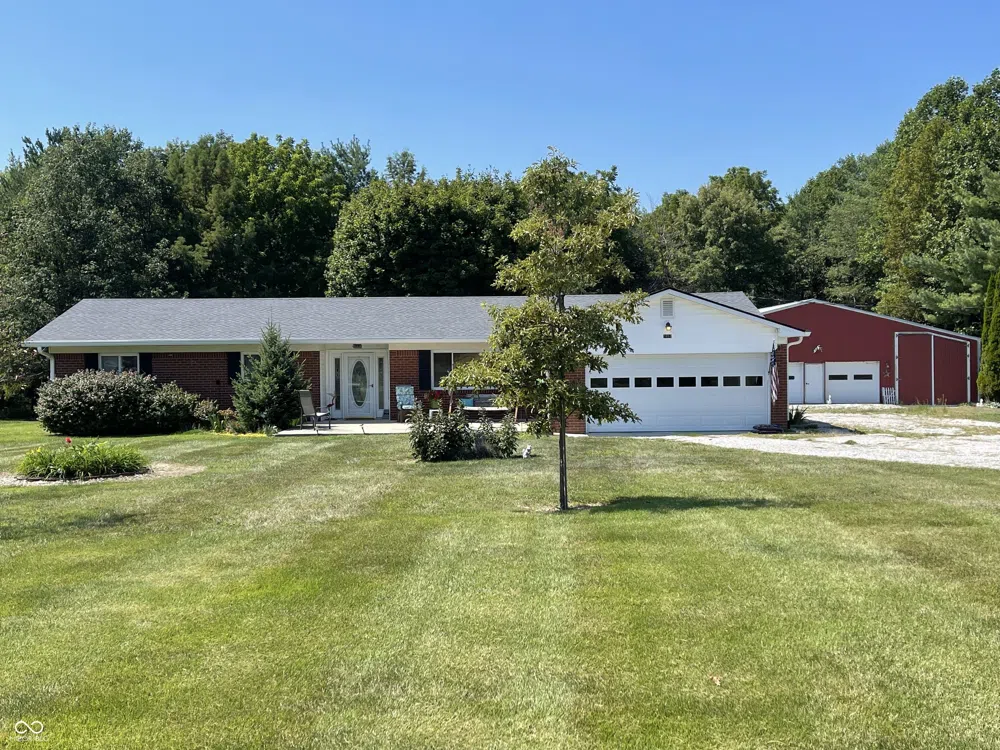 This stunning brick ranch offers 1,823 square feet of beautifully updated living space on nearly 3 acres. Featuring 3 spacious bedrooms and 2.5 modern baths, this home is designed for both comfort and style. The kitchen boasts granite countertops, a center island, stainless steel appliances, and new cabinets, complemented by built-in bookshelves and hardwood laminate flooring. The open floor plan seamlessly connects the kitchen to the family room, which includes an electric fireplace for cozy gatherings. Additionally, there's a large living room that opens up to a covered patio, perfect for outdoor entertaining. Outside, you'll find two substantial barns-a versatile 864-square-foot structure and an expansive 3,744-square-foot barn with a lean-to, ideal for various uses. Mature trees and the surrounding acreage provide a tranquil retreat while maintaining close proximity to schools and easy access to interstates. Don't miss your chance to own this charming property with the perfect blend of modern updates and serene country living. Come see it today!