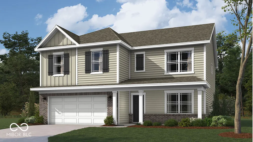 Welcome to the enchanting Henley at Baker's Pointe, a captivating two-story haven nestled in the heart of Pendleton. This magnificent home unfolds with five generously sized bedrooms and three full baths, including a convenient main-level suite ideal for guests or multi-generational living. As you step inside, the family room warmly greets you, drawing your gaze to a discreet staircase that promises both convenience and privacy. The kitchen, a culinary artist's dream, boasts exquisite gray cabinetry, gleaming quartz countertops, and a generous pantry. A built-in island not only serves as a functional workspace but also offers ample seating for lively gatherings. The main level is graced with a versatile study, perfect for crafting your ideal home office or creative sanctuary. Ascend to the upper level, where four additional bedrooms offer restful retreats, including one with a luxurious walk-in closet. A second living area awaits, ready to transform into an entertainment paradise or a serene escape. True to D.R. Horton's reputation, the Henley embraces cutting-edge innovation with America's Smart Home Technology. Revel in the modern convenience of a smart video doorbell, a sophisticated Honeywell thermostat, a secure smart door lock, and the ambient Deako light package, all designed to enhance your living experience. Photos are representative of plan and may vary as built.